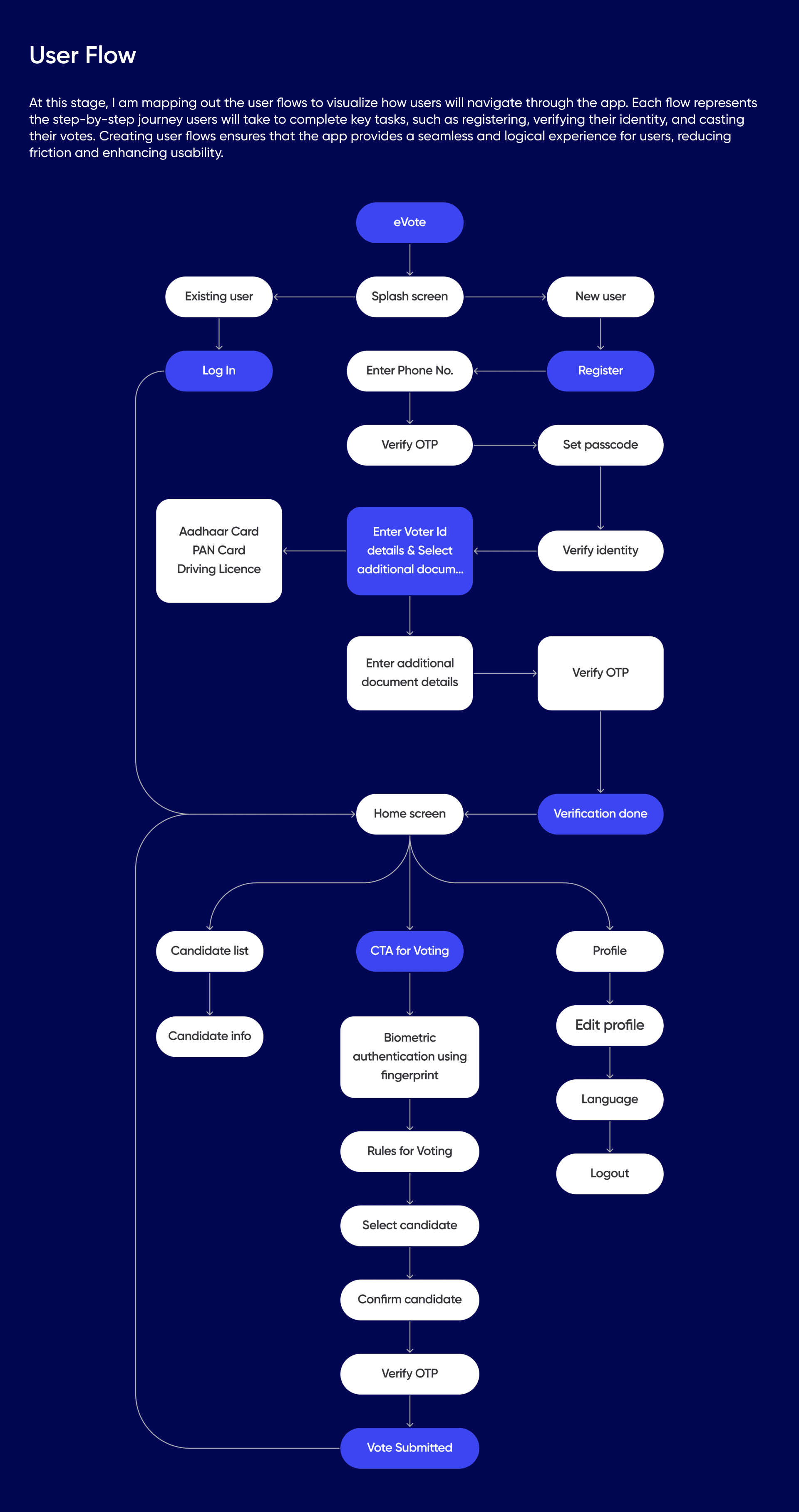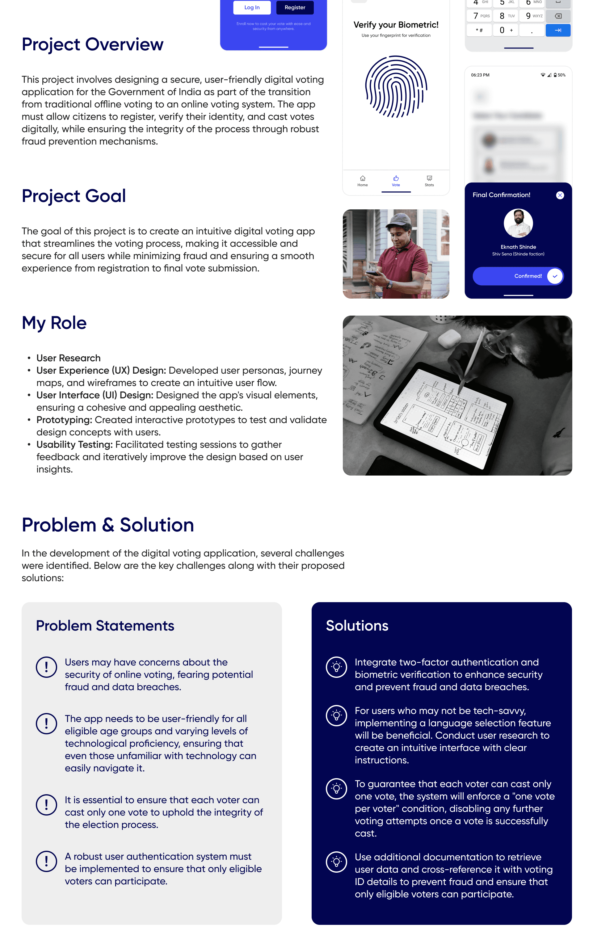 The goal was to simplify the voting process with a focus on security and accessibility. I designed intuitive interfaces, easy navigation, and clear CTAs to ensure users could cast their votes confidently. The app prioritizes a smooth user experience, making democratic participation as hassle-free as possible.