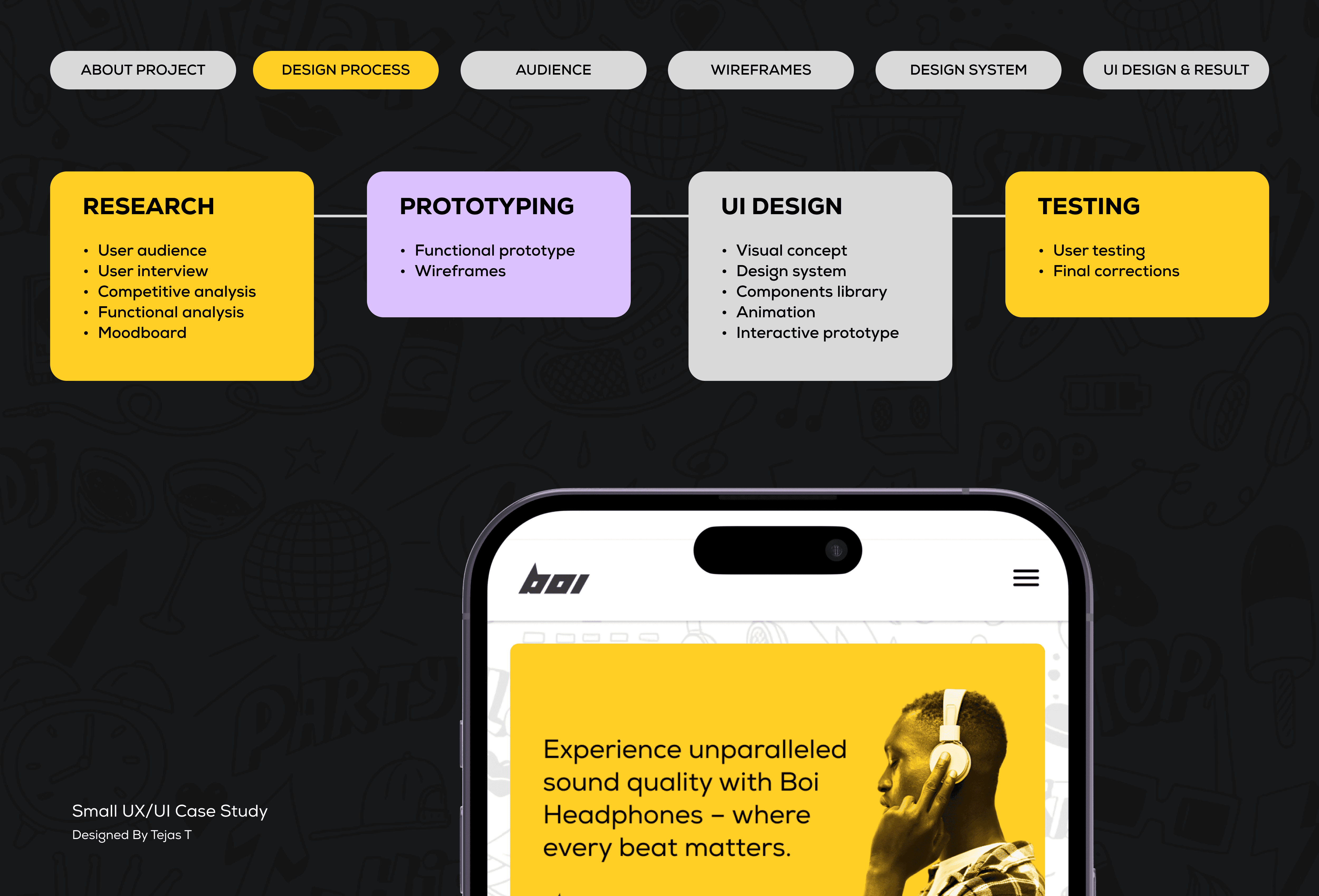 When I officially dove into the world of UX/UI design through Udemy courses, I thought, "How hard could it be?" Spoiler alert: It was a bit more challenging than I expected! Armed with the principles I learned, I took on my first case study for BOI Headphones.